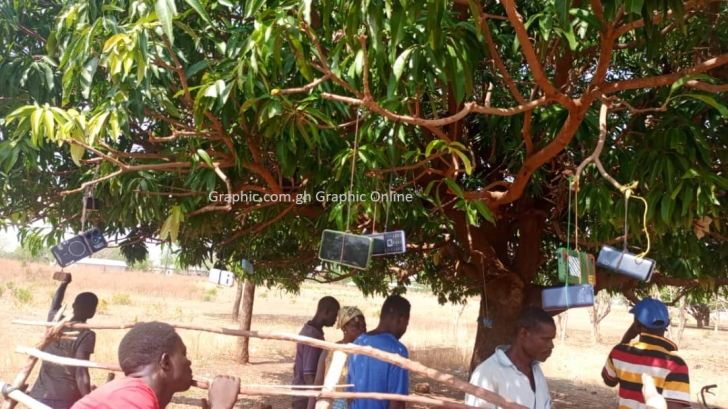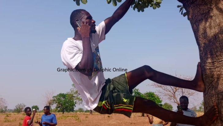 Residents of Sanguli, a rural village in the Northern Region’s Saboba District, congregate under a tree they jokingly refer to as “MTN” on a sunny Sunday afternoon.
