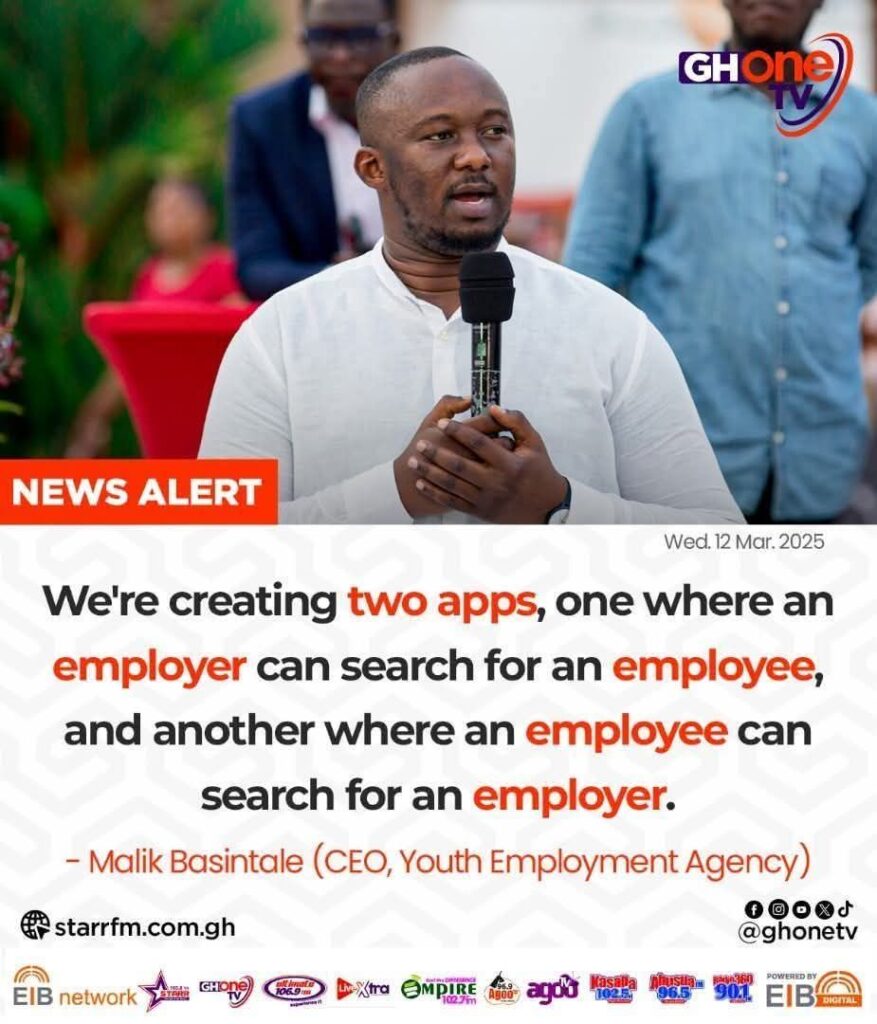 Mr. Malik Basintale, the CEO of the Youth Employment Agency (YEA), has defended the organization’s choice to launch two distinct mobile applications in an effort to increase employment opportunities in Ghana.